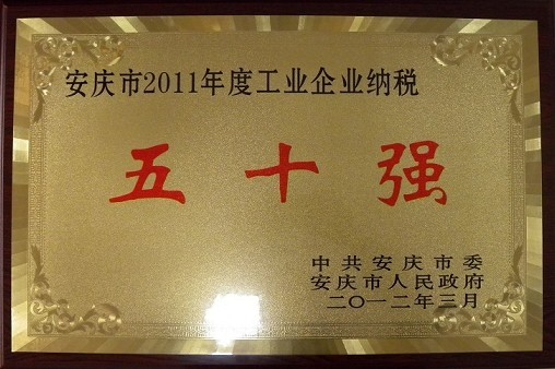 公司获2011年度工业企业纳税五十强称号